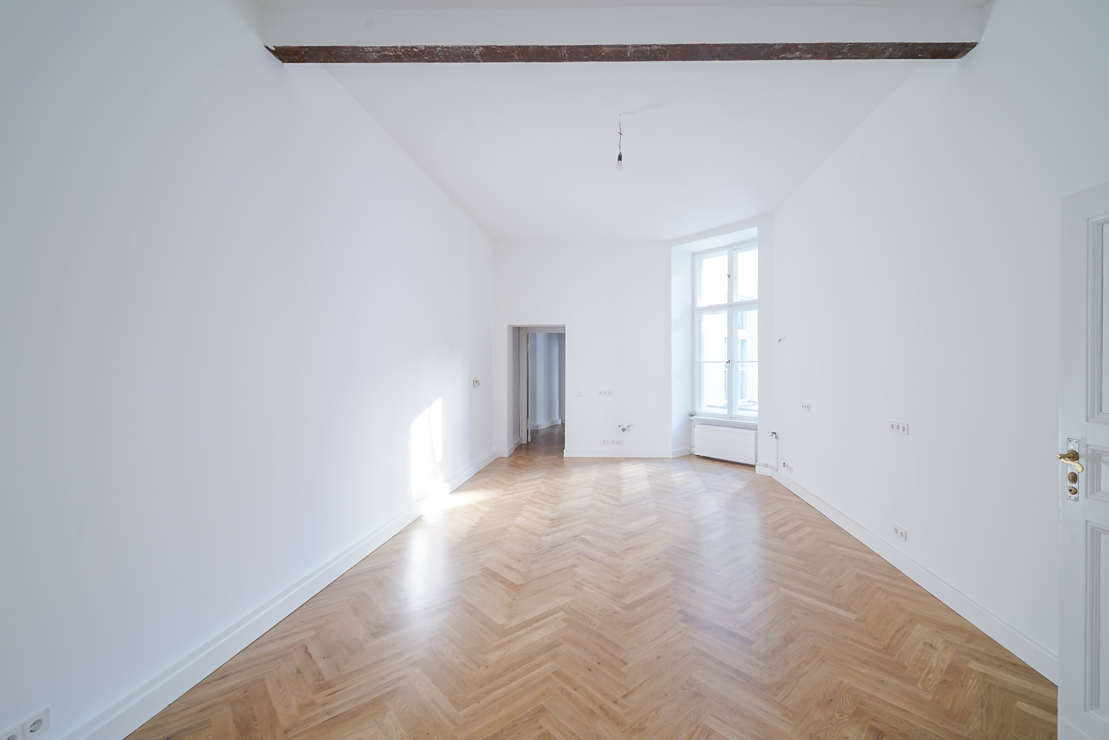 Diese lichtdurchflutete 4-Zimmer-Altbauwohnung vereint historischen Charme mit modernem Wohnkomfort auf höchstem Niveau. Bereits beim Betreten entfaltet sich eine beeindruckende Atmosphäre. Enorme Deckenhöhen und stilvolle dekorative Elemente verleihen den Räumen eine elegante Weite und ein repräsentatives Ambiente. Große Fensterflächen durchfluten die Wohnung mit Tageslicht und betonen das luftige, offene Raumgefühl. Der durchdachte Grundriss verbindet harmonisch klare Strukturen mit einer angenehmen Wohnatmosphäre. Hochwertiger Parkettboden unterstreicht die warme, zeitlose Eleganz und verleiht den Räumen eine besonders edle Ausstrahlung. Das Badezimmer überzeugt durch seine komfortable Fläche sowie ein großes Fenster, das für eine helle und einladende Stimmung sorgt. Ergänzend steht ein separates Gäste-WC zur Verfügung, ein anspruchsvolles Detail für gehobenen Wohnkomfort. Die Verbindung aus liebevoll bewahrter Altbausubstanz, hochwertiger Sanierung und eleganter Ausstattung schafft ein einzigartiges Zuhause für Menschen mit Sinn für Stil, Qualität, historischen Charakter und feine Wohnkultur.